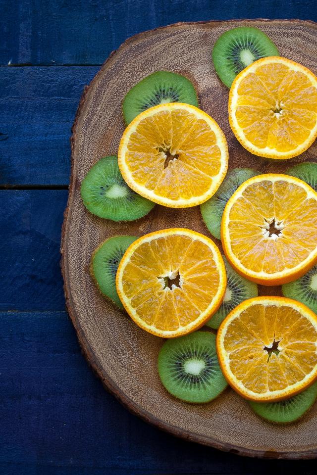 Wallpaper Kiwi slices with oranges on a chalkboard