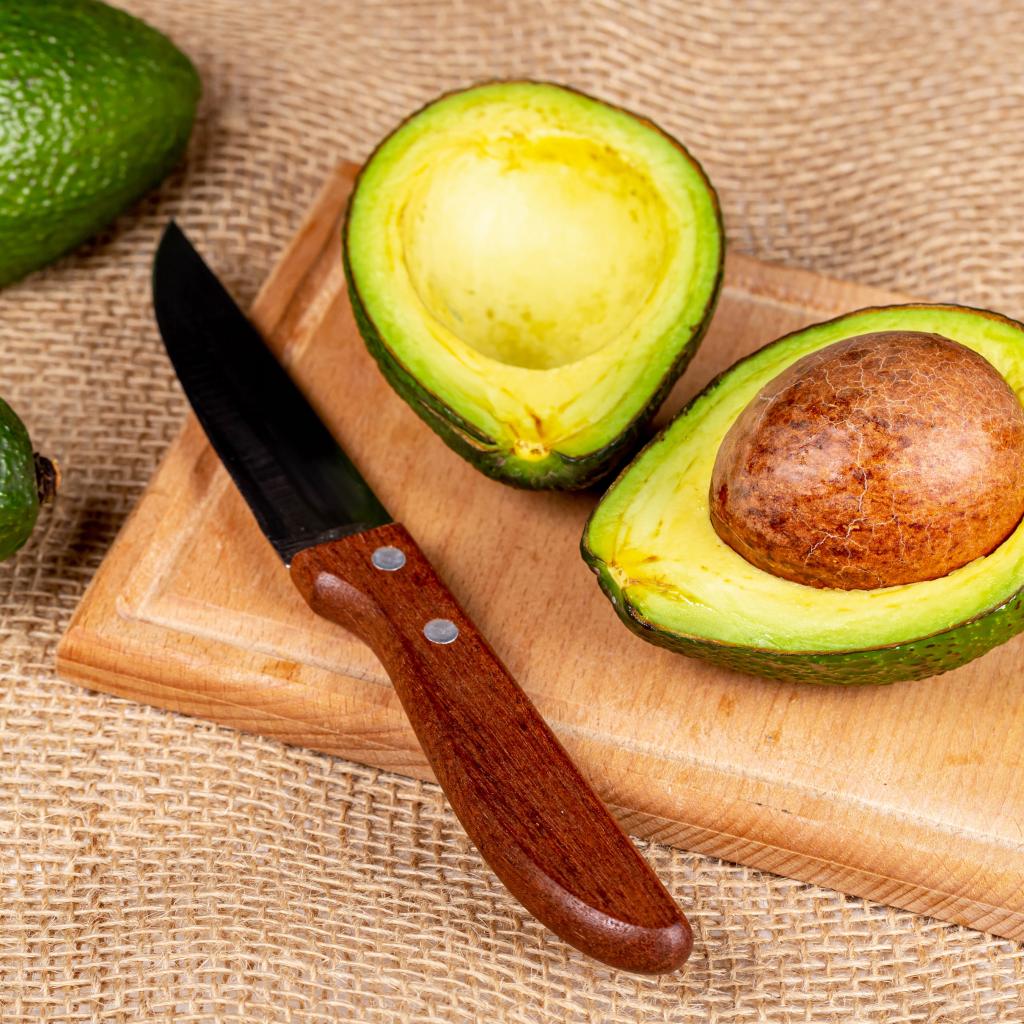 Wallpaper Green avocado with knife on cutting board