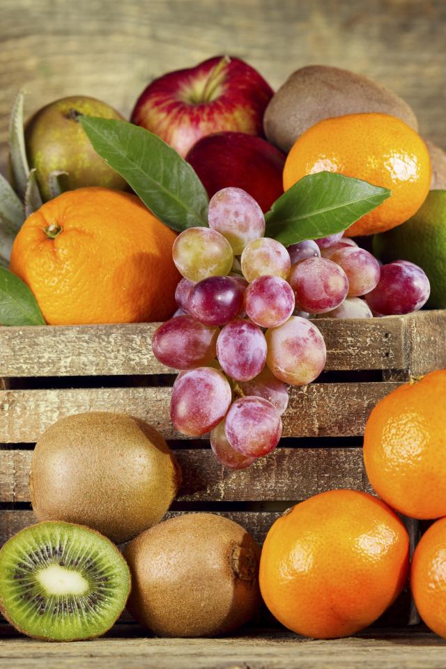 Wallpaper Wooden box with fresh fruit