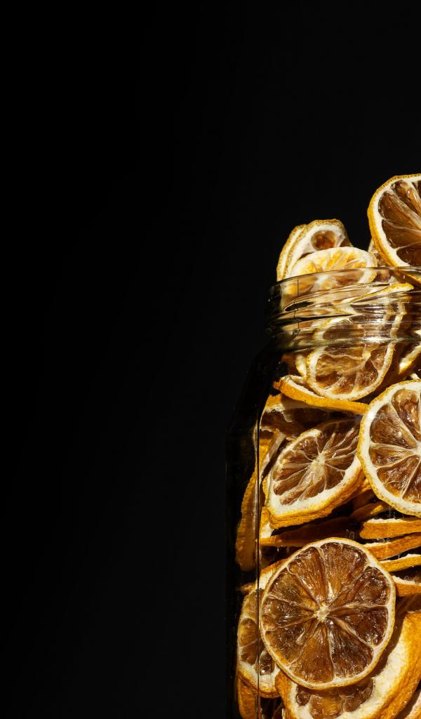 Wallpaper Dried lemons in a jar on a black background