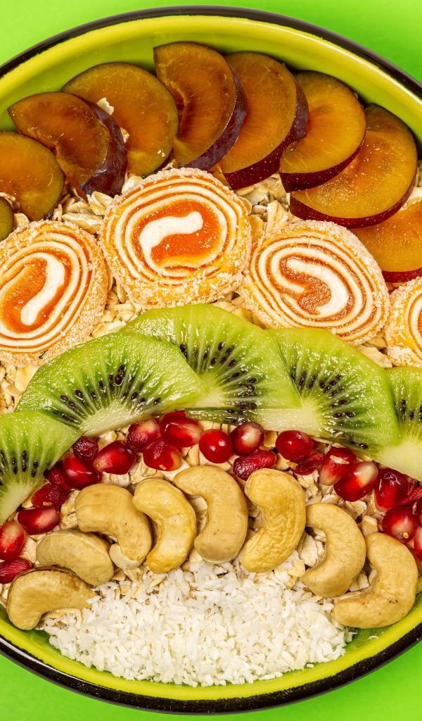» Wallpaper Fruit jelly and muesli in a plate