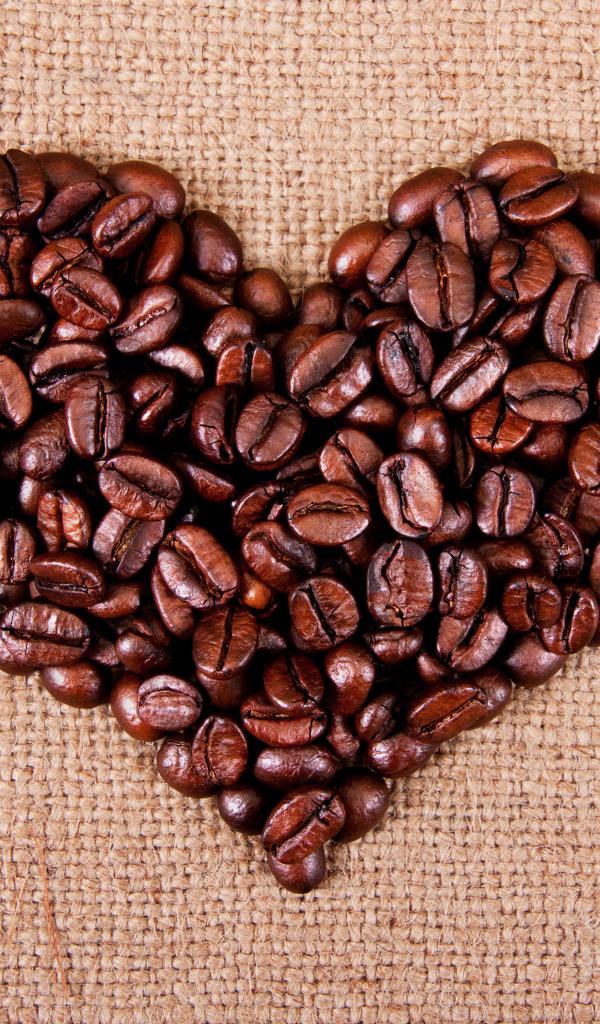 Wallpaper Roasted coffee beans heart on burlap