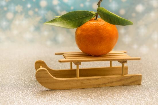Wallpaper Big orange tangerine on a small sled