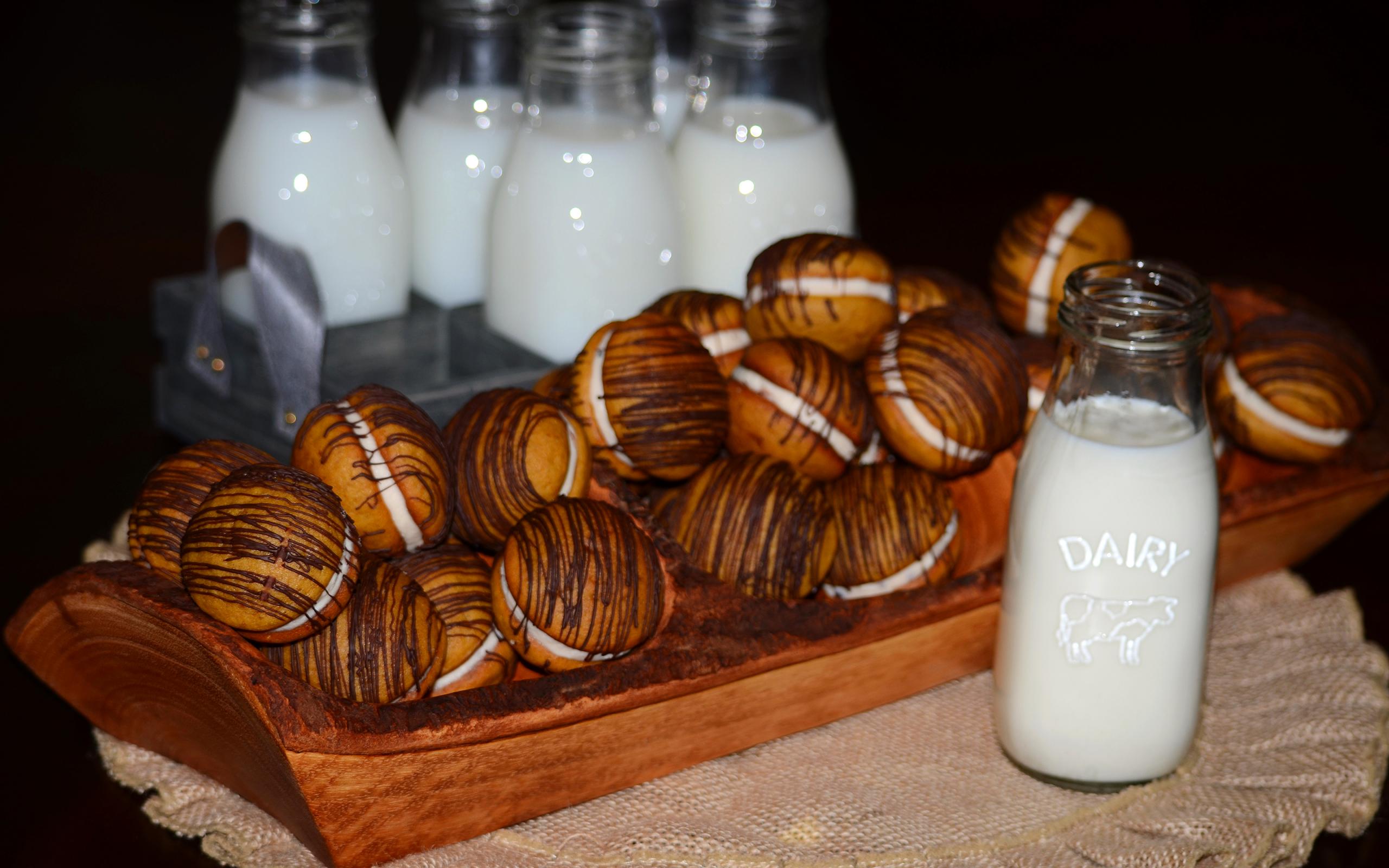 Wallpaper Delicious round cookies with milk