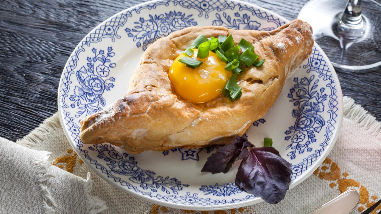 Wallpaper Freshly baked khachapuri with egg yolk