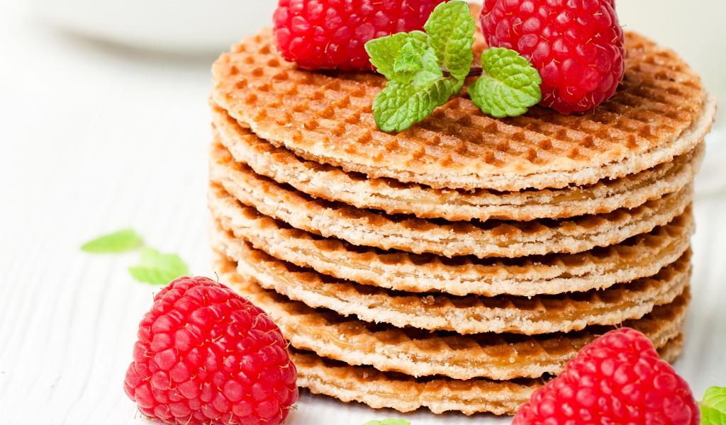 Wallpaper Sweet waffles with honey, raspberries and figs