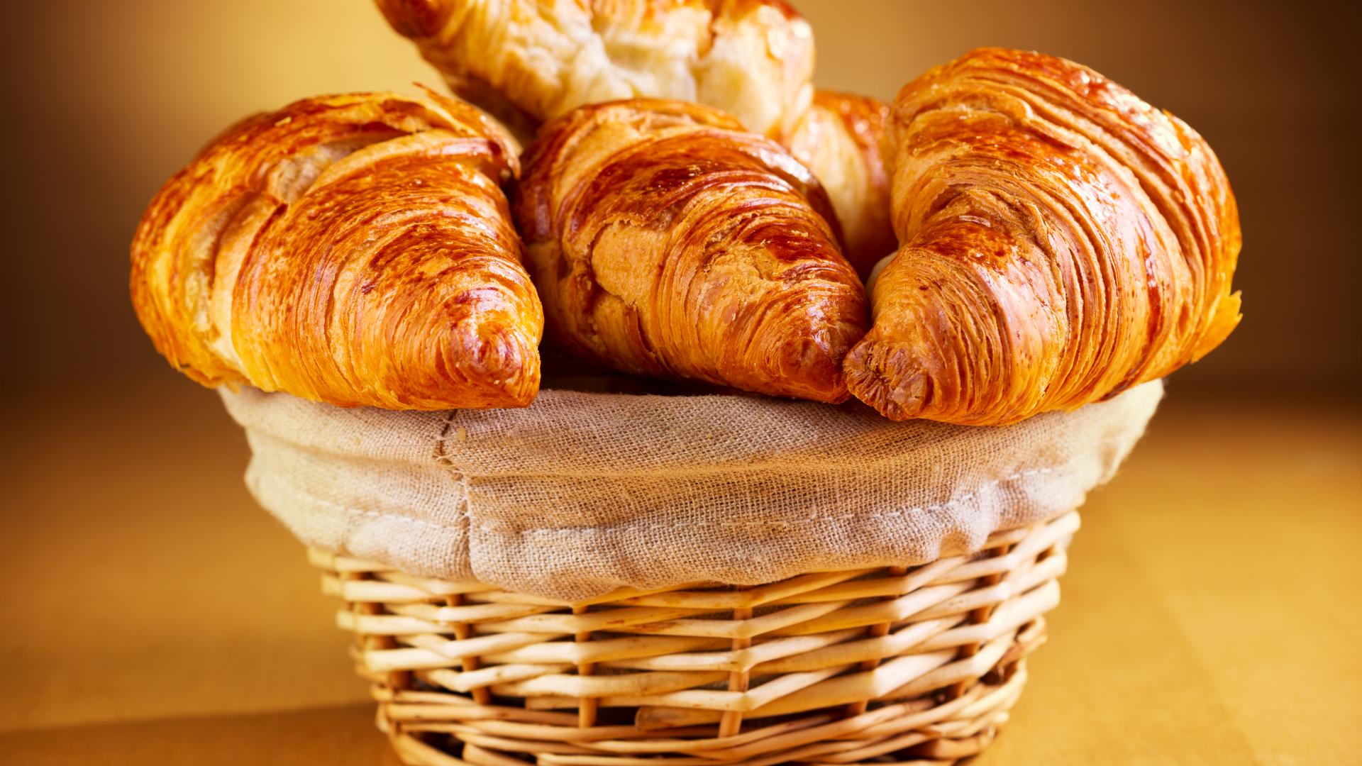 Wallpaper Fresh croissants in a wicker basket with a towel