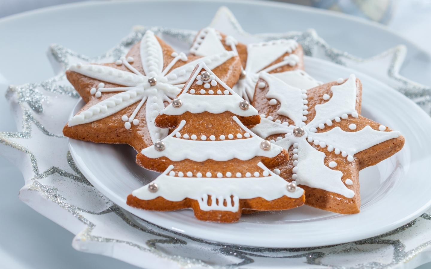 Wallpaper Beautiful New Year`s cookies on a white plate