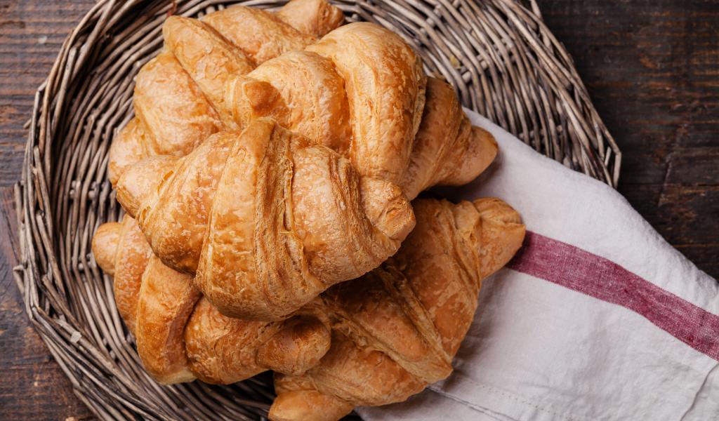 Wallpaper Fresh croissants in a wicker basket with a towel