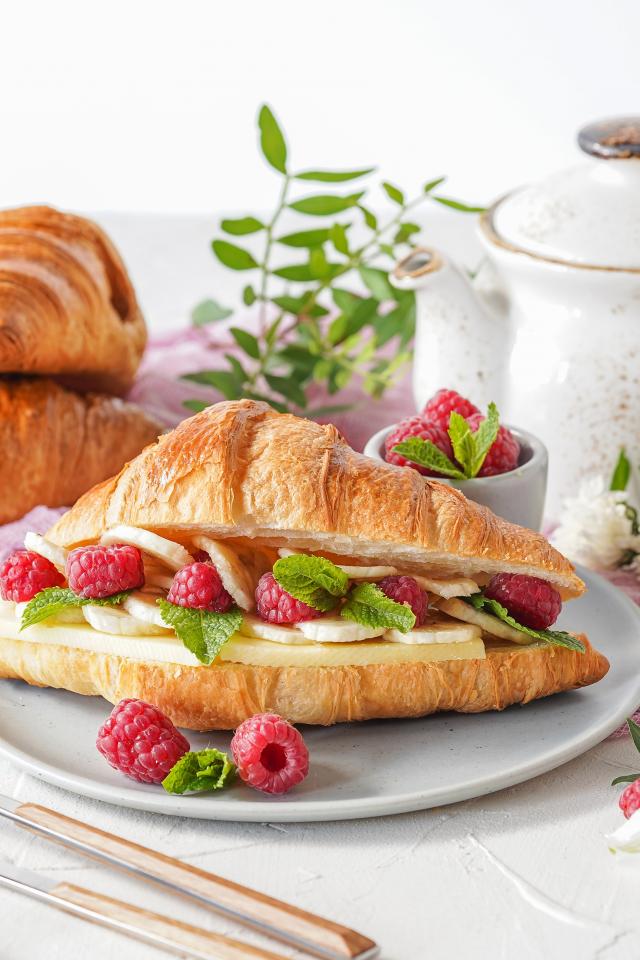 Wallpaper Croissant sandwich with raspberries and bananas