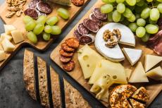 Wallpaper Long loaf with tomatoes and red pepper on a table with butter