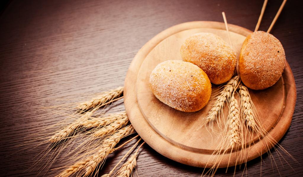Wallpaper Fresh bread with wheat ears on chalkboard