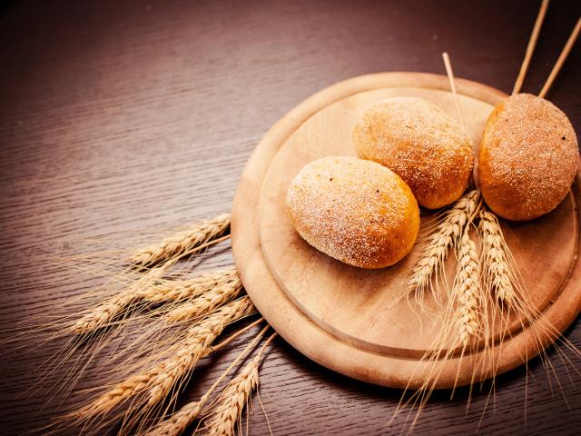 Wallpaper Fresh bread with wheat ears on chalkboard