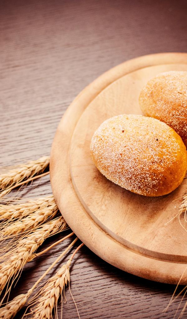 Wallpaper Fresh bread with wheat ears on chalkboard