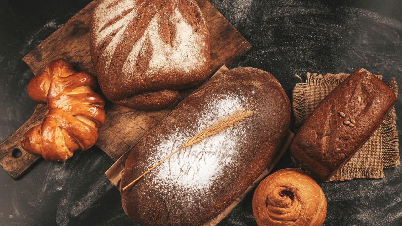 Wallpaper Fresh bread and buns on a cutting board