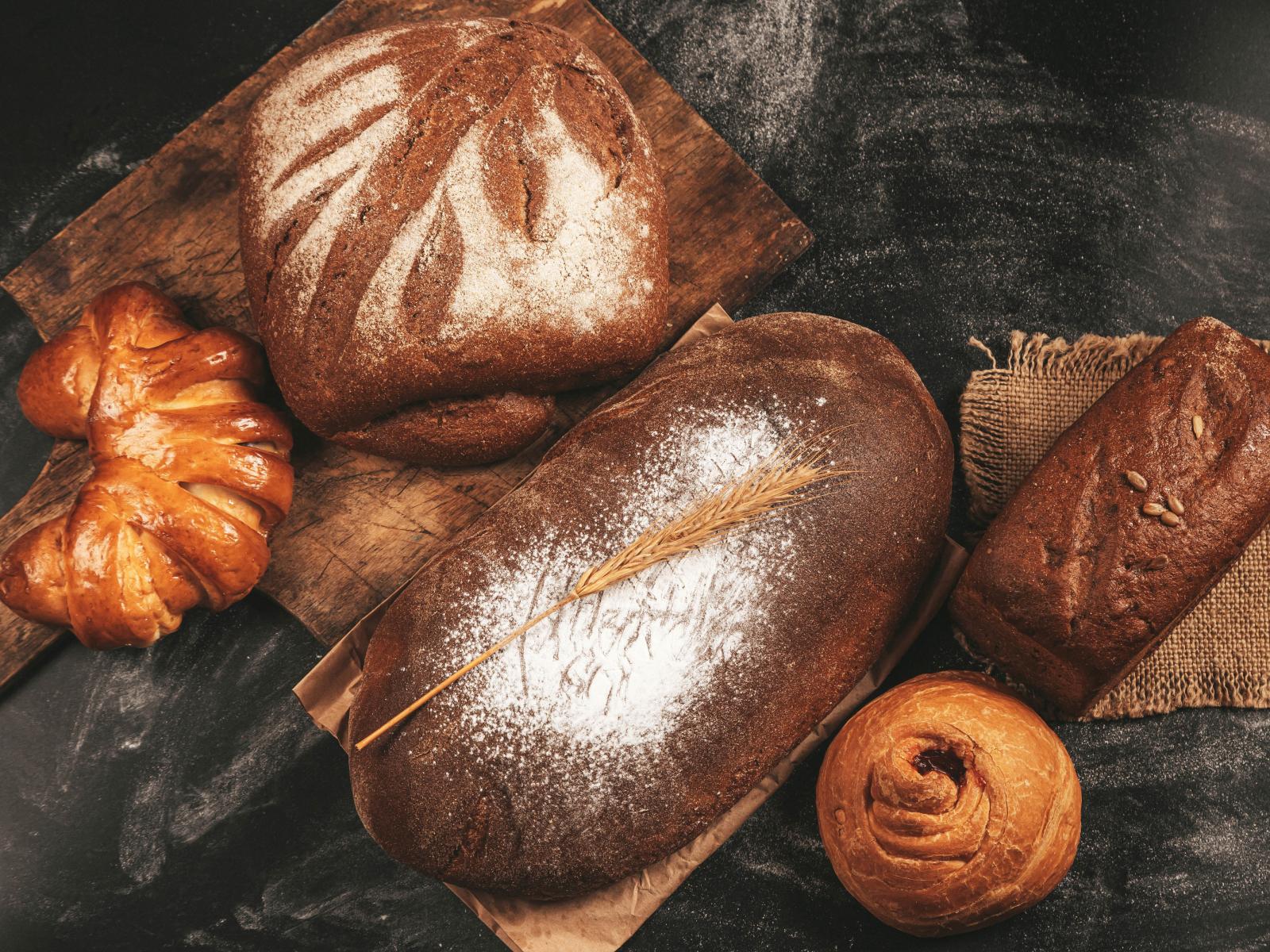 Wallpaper Fresh bread and buns on a cutting board