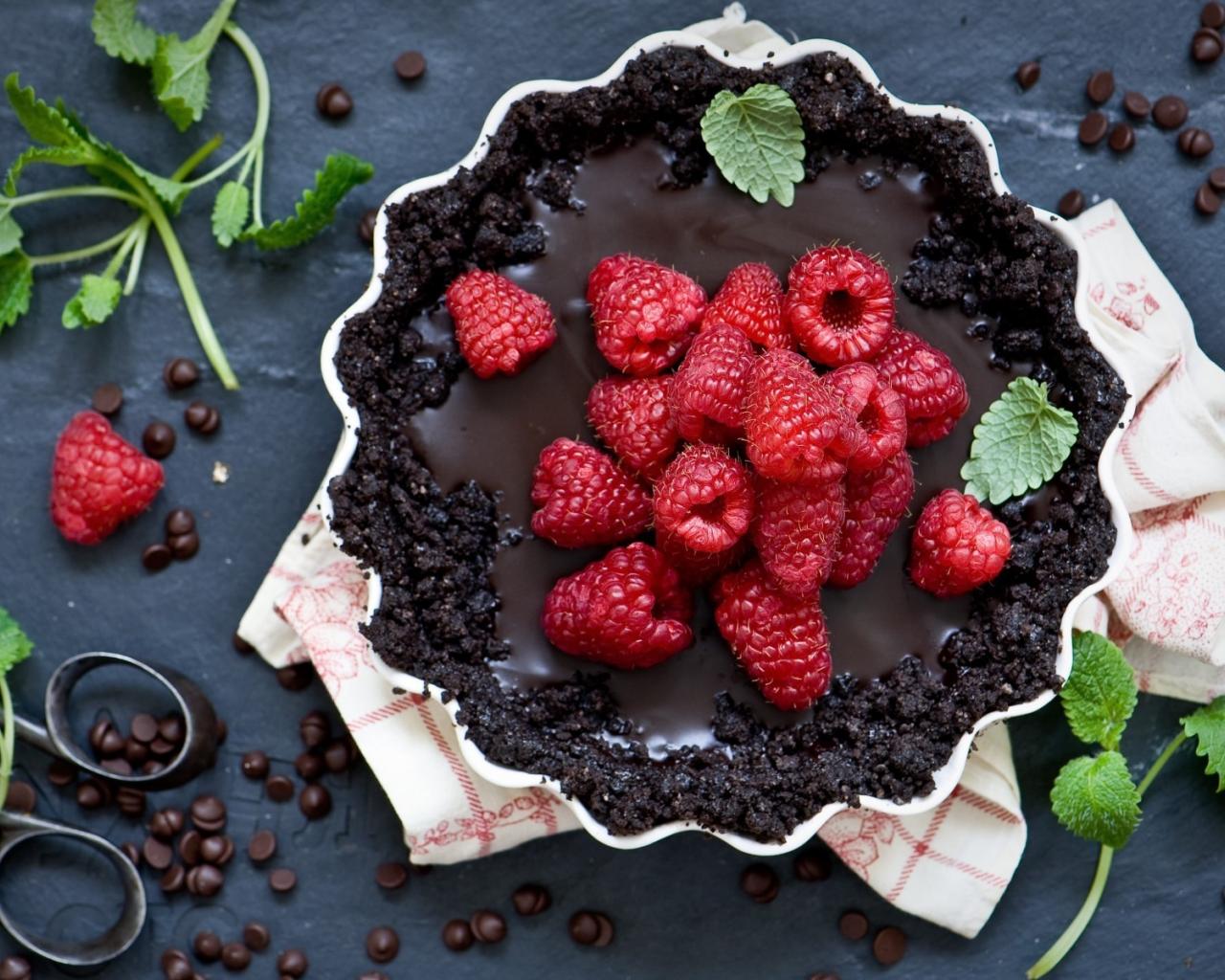 Wallpaper Delicious cake with fresh raspberries
