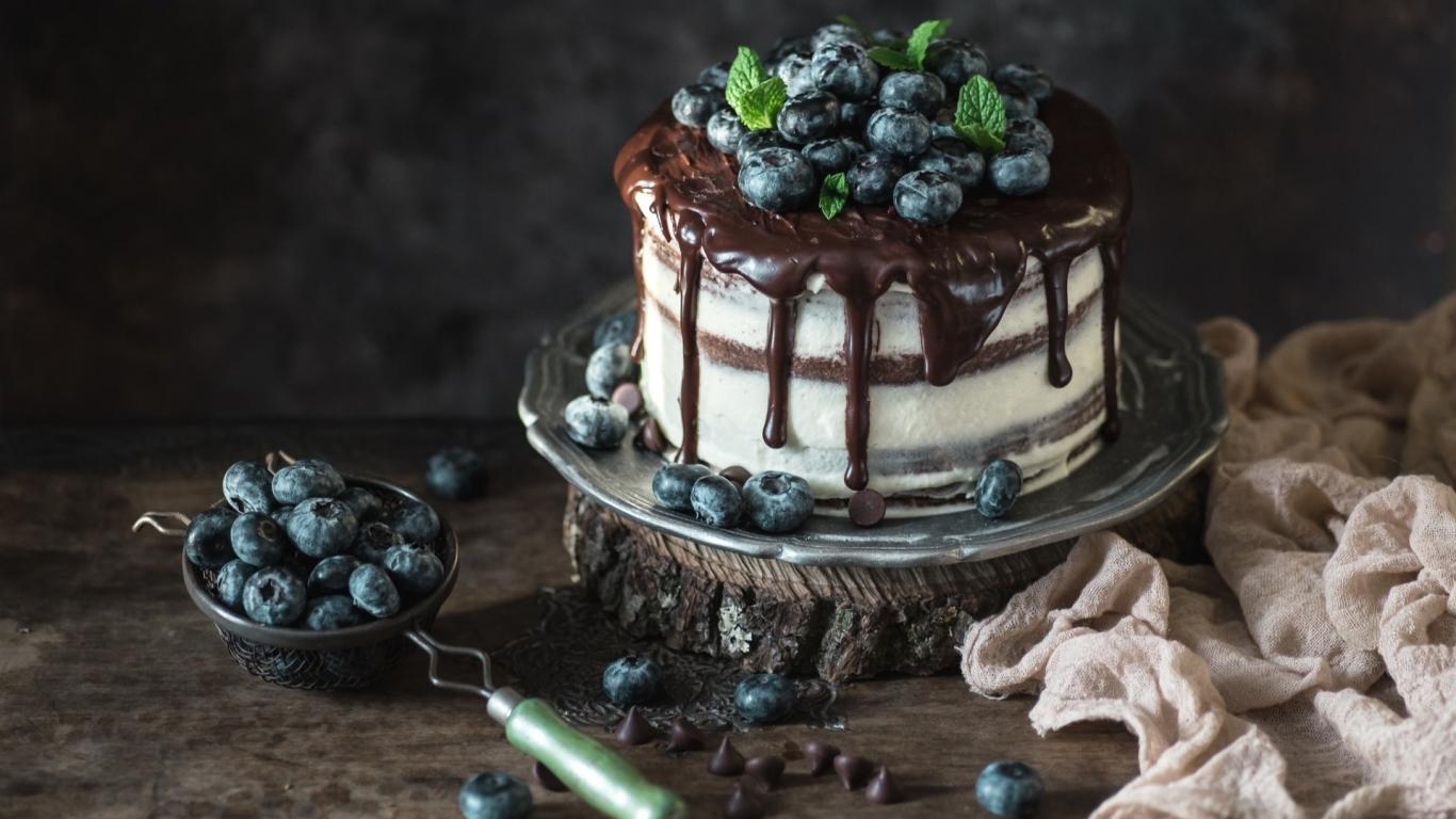 Wallpaper Appetizing cake with blueberries and chocolate