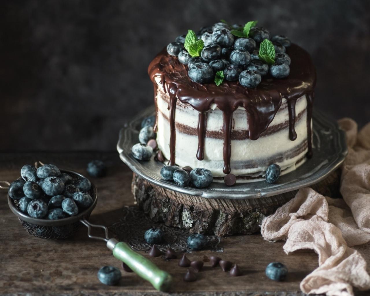 Wallpaper Appetizing cake with blueberries and chocolate