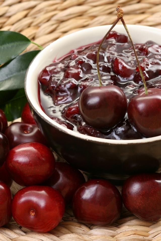 » Wallpaper Jam from red cherries on a table