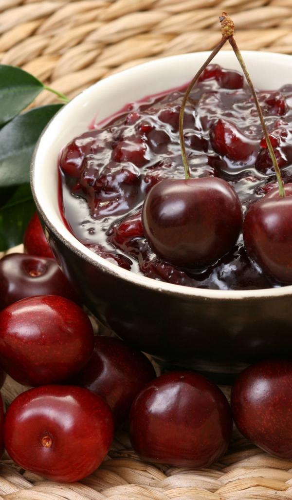 » Wallpaper Jam from red cherries on a table