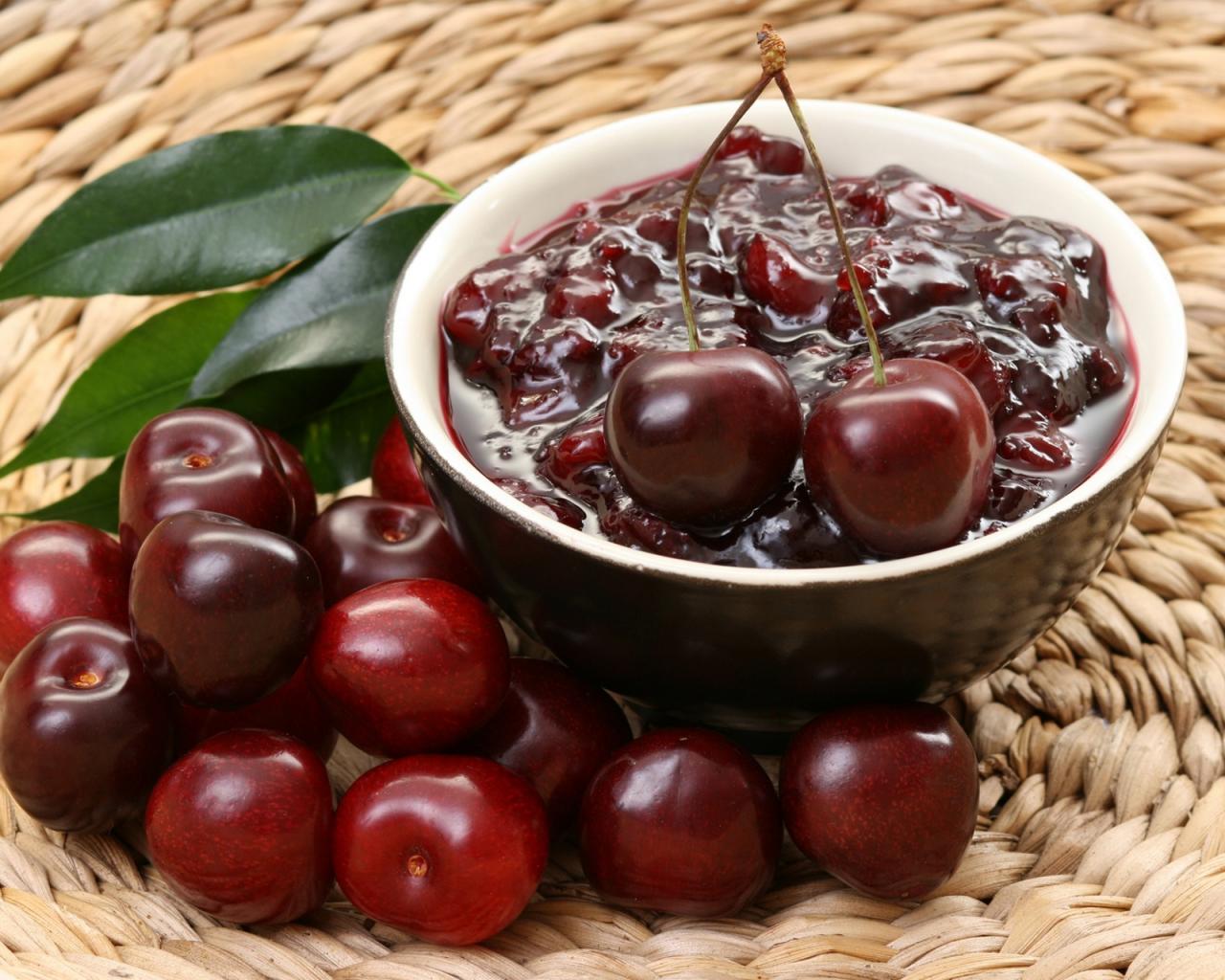 » Wallpaper Jam from red cherries on a table