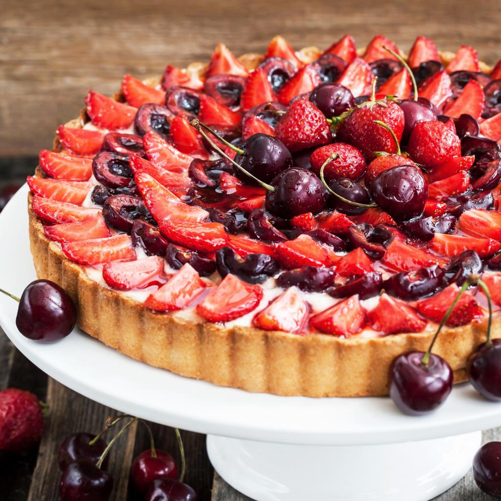 Wallpaper Pie with fresh appetizing strawberries and cherries