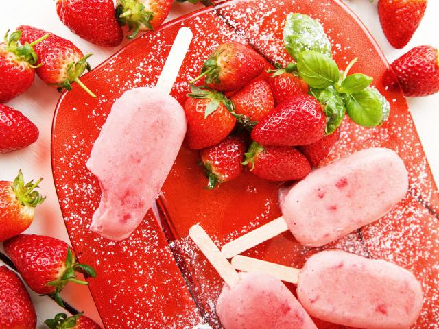 Wallpaper Delicious strawberry ice cream with fresh strawberries