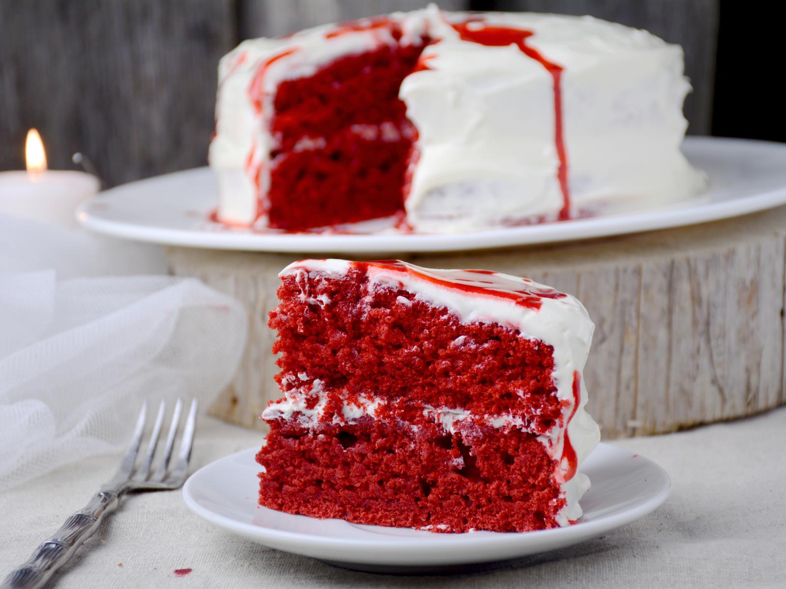 Wallpaper A piece of red cake with white cream