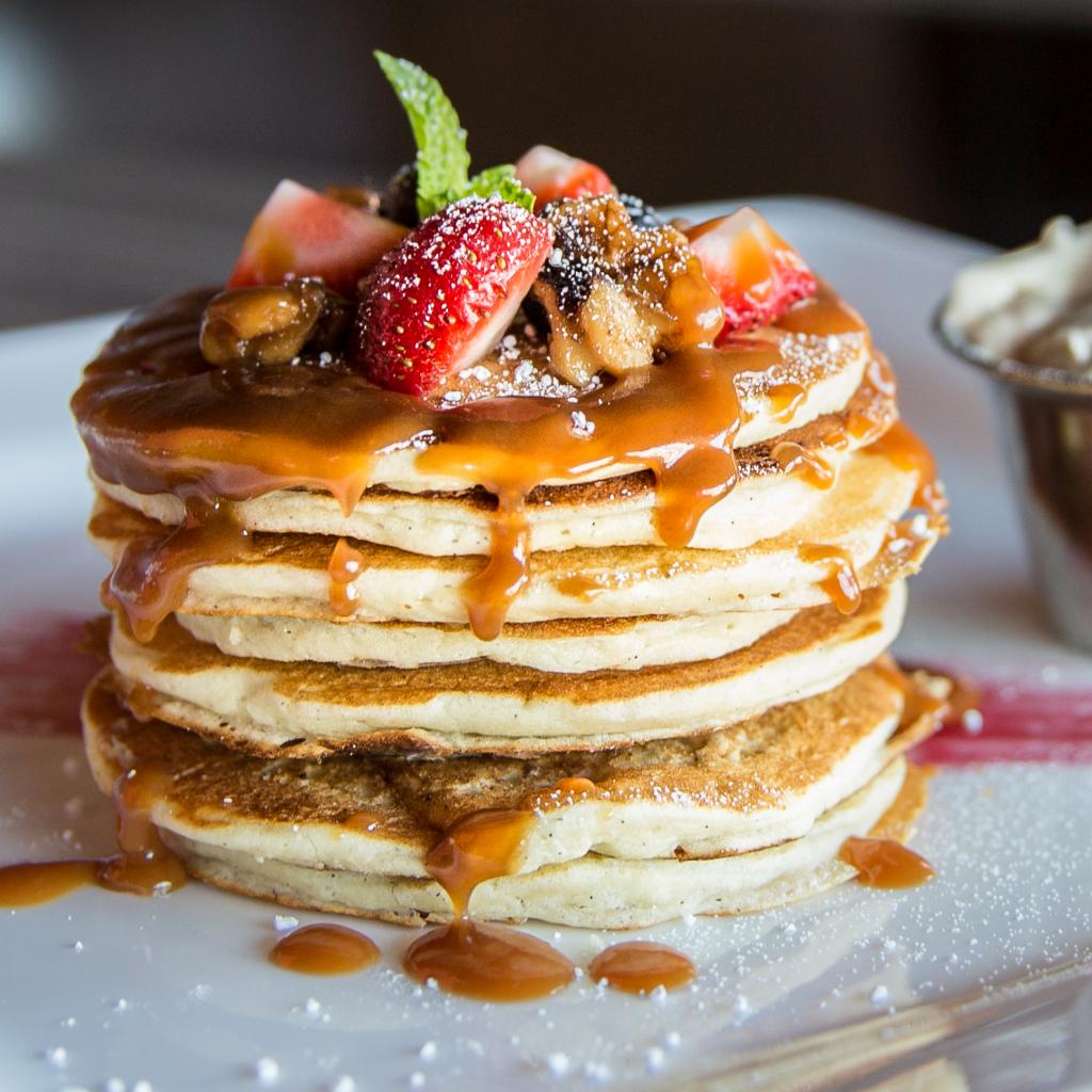 Wallpaper Pancakes with condensed milk and fresh fruit