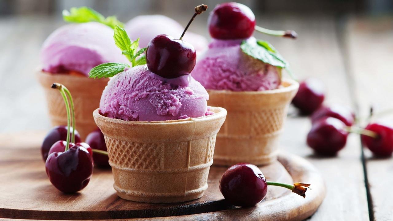Wallpaper Fruit ice cream in a waffle cup with a cherry