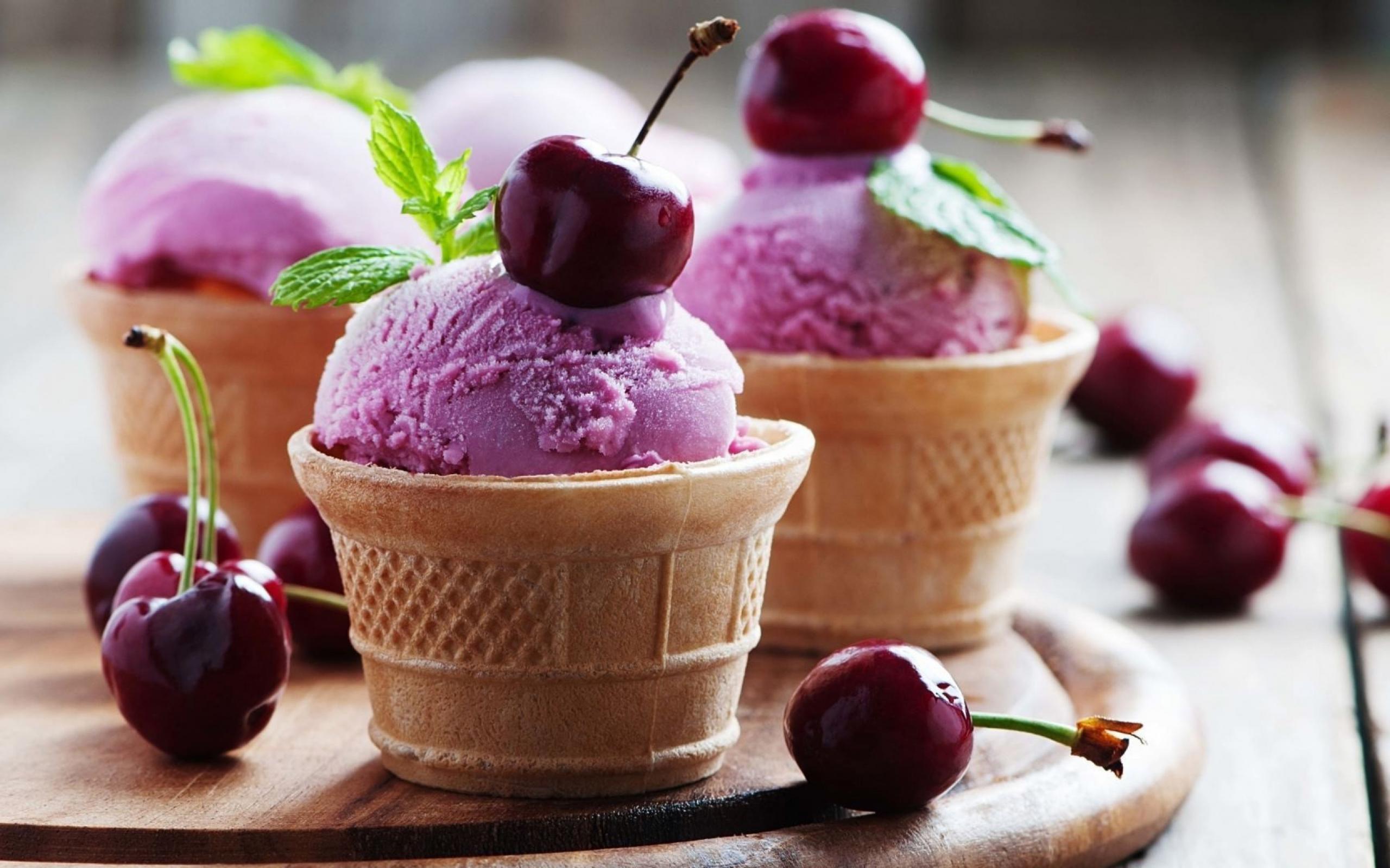 Wallpaper Fruit ice cream in a waffle cup with a cherry
