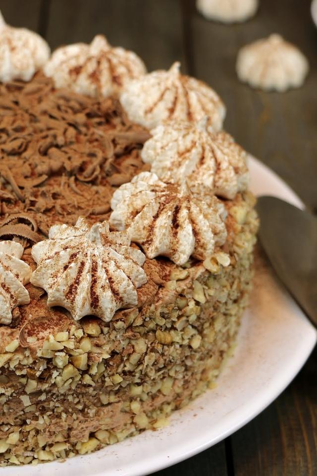 Wallpaper Big cake with condensed milk, nuts and chocolate on the table