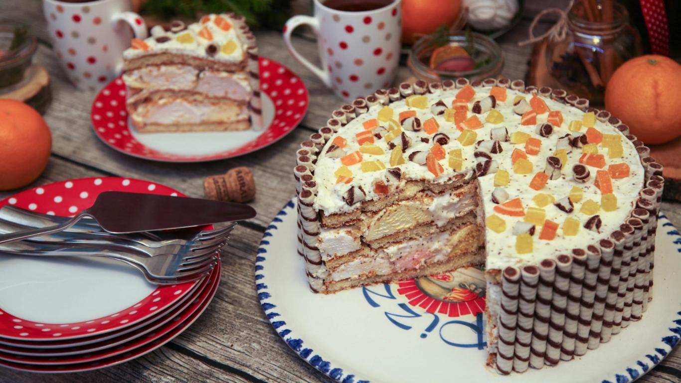 Wallpaper Beautiful marshmallow cake on a festive table