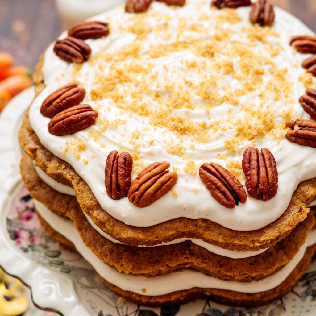 » Wallpaper Festive cake with cream and nuts