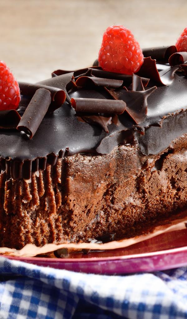 Wallpaper Chocolate cake with fresh raspberries on a plate