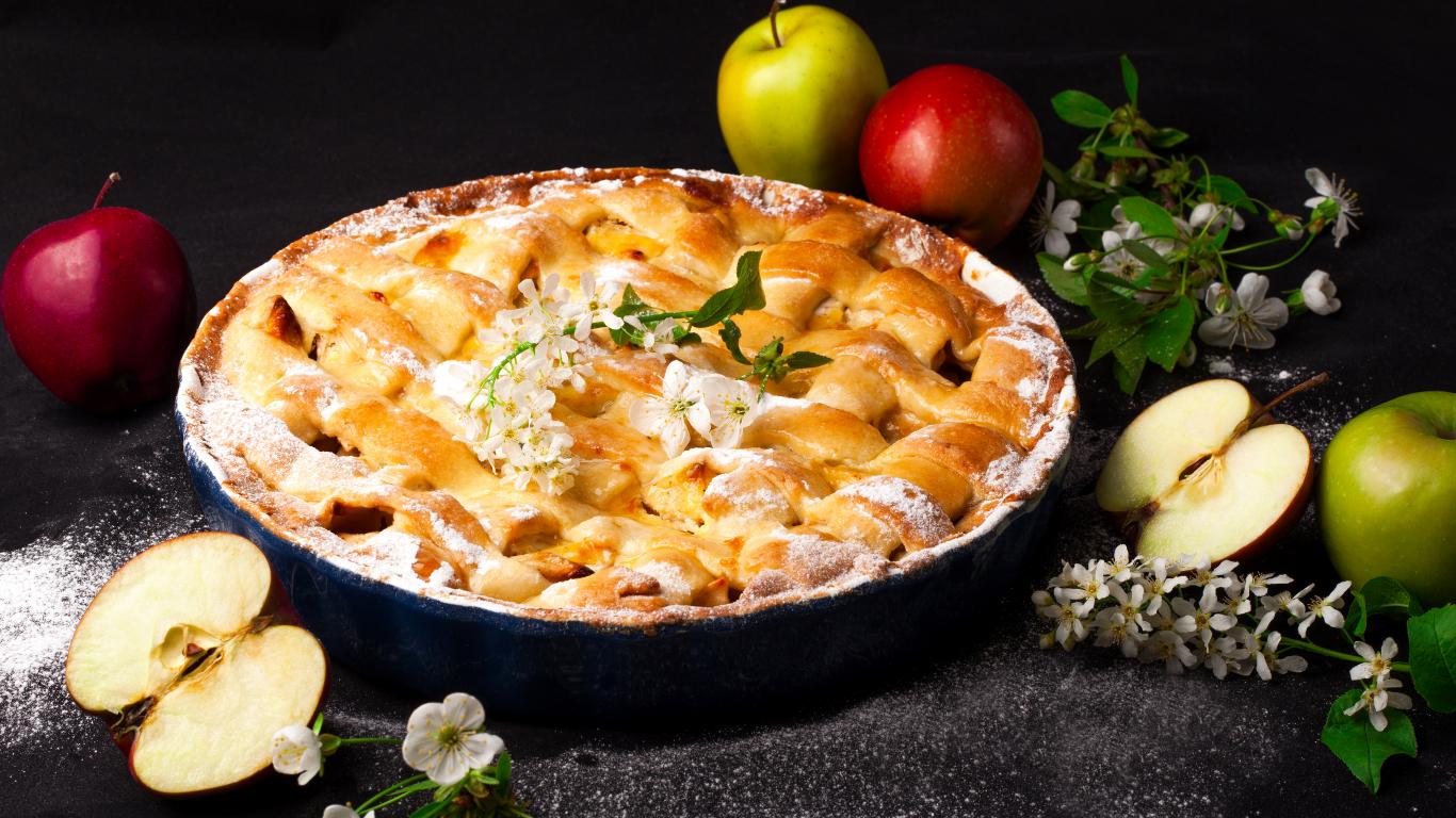 Wallpaper Fresh pieces of figs and apples in a plate on a table