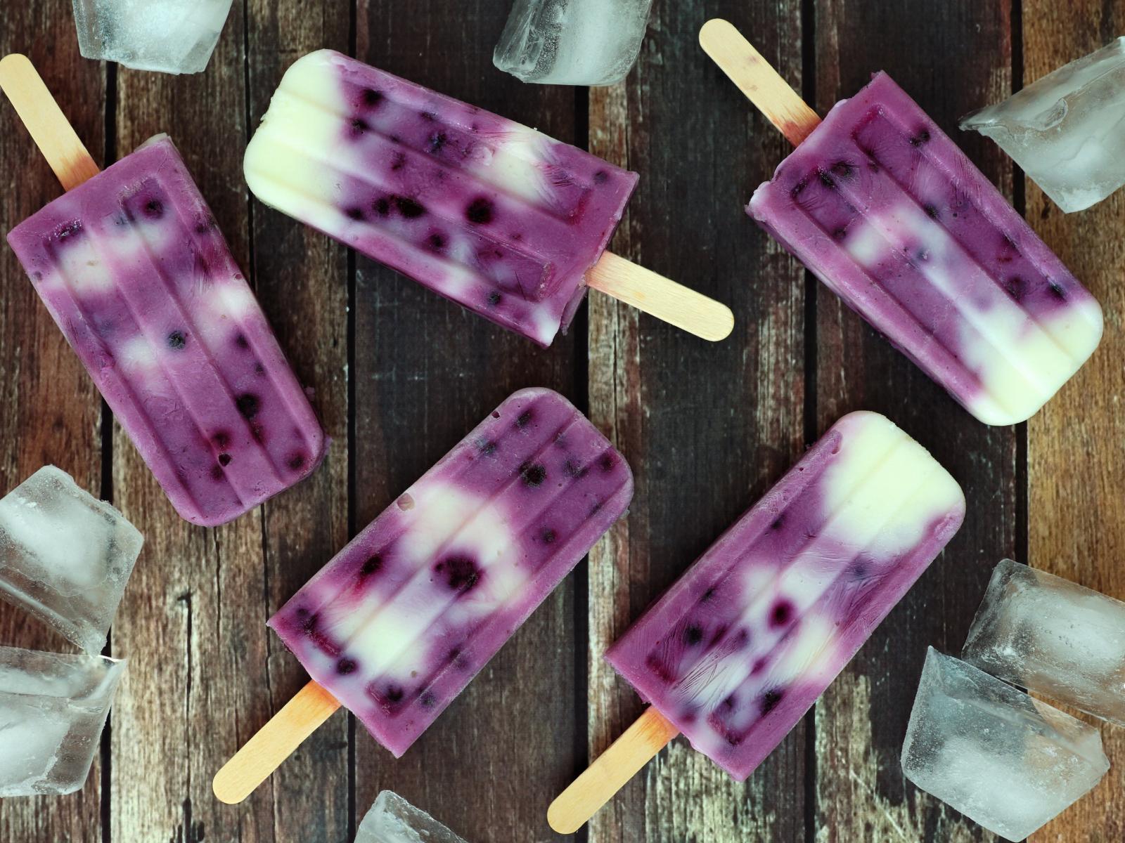 Wallpaper Fruit blueberry ice cream on a stick with ice slices