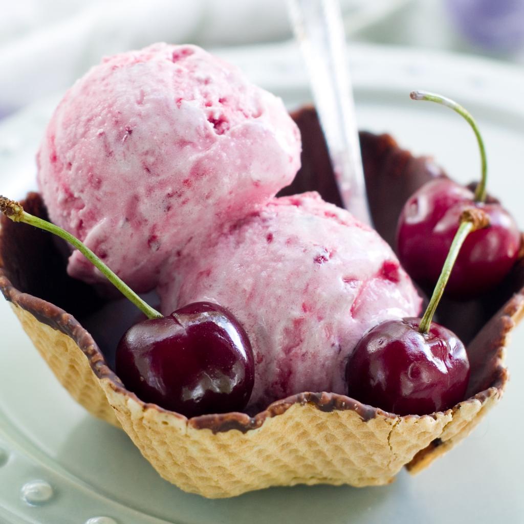 » Wallpaper Two balls of cherry ice cream in a wafer basket