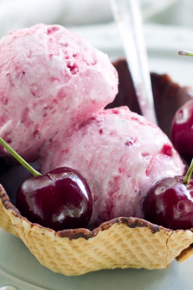 » Wallpaper Two balls of cherry ice cream in a wafer basket