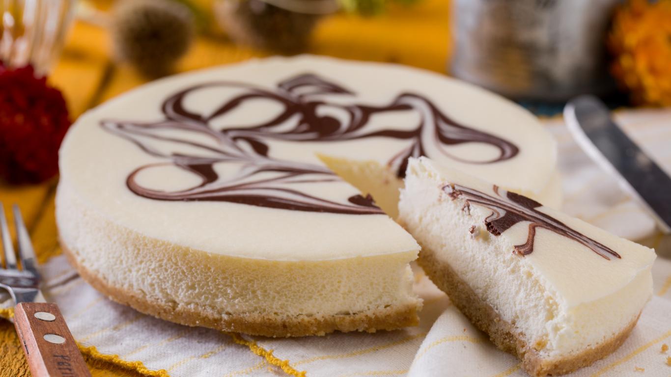 Wallpaper Appetizing cake with chocolate pattern is on the table