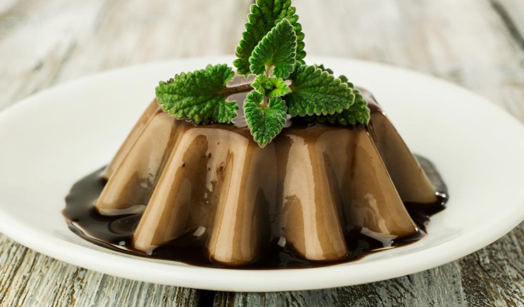 Wallpaper Dessert of jelly on a white plate with chocolate