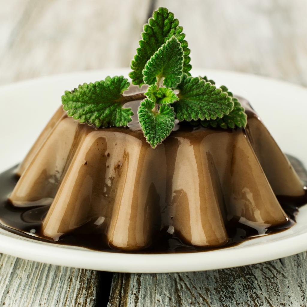 Wallpaper Dessert of jelly on a white plate with chocolate