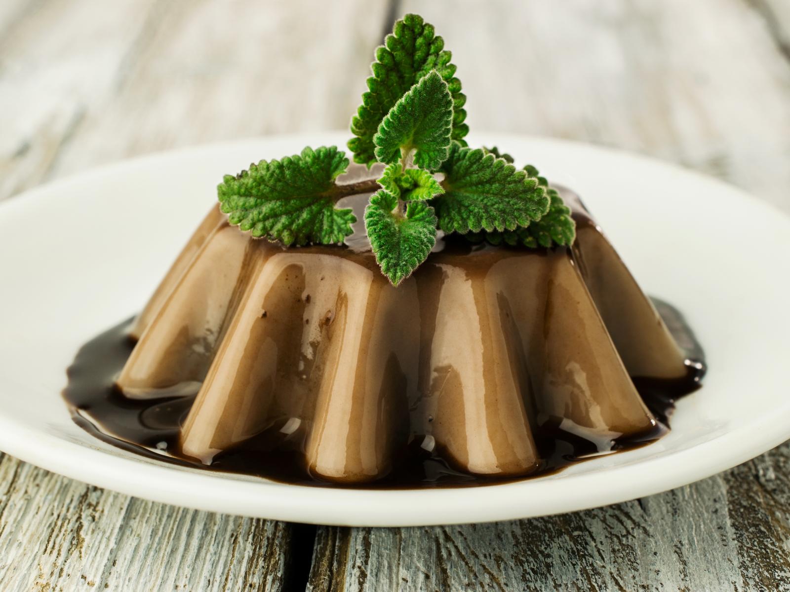 Wallpaper Dessert of jelly on a white plate with chocolate