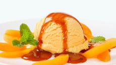 Wallpaper Balls of peach and raspberry ice cream in a wafer basket