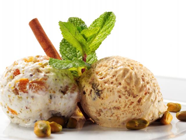 Wallpaper Two balls of ice cream with cinnamon and mint