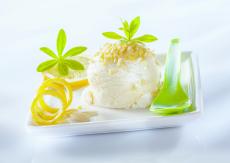 Wallpaper A ball of lemon ice cream with pistachios with a green spoon