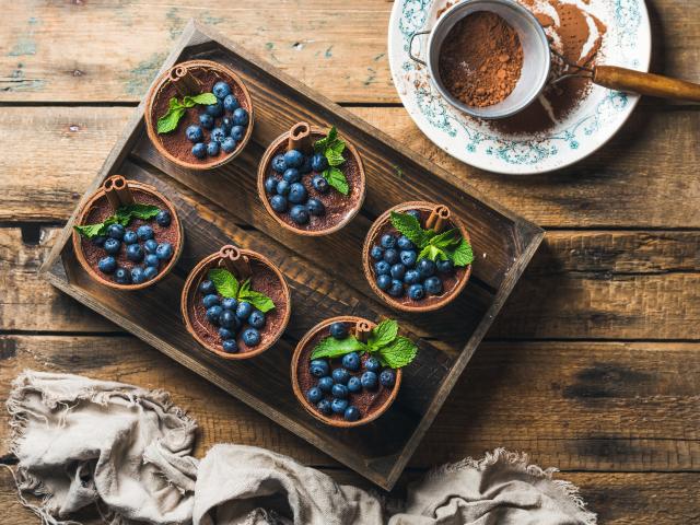 Wallpaper Chocolate dessert with cinnamon and blueberries