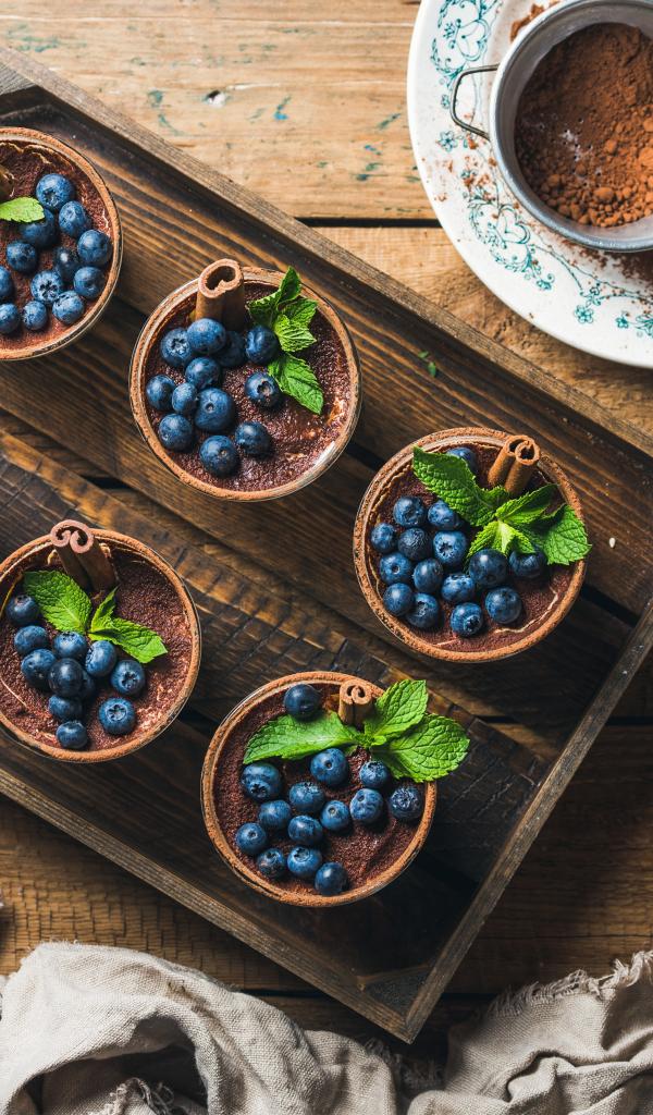 Wallpaper Chocolate dessert with cinnamon and blueberries
