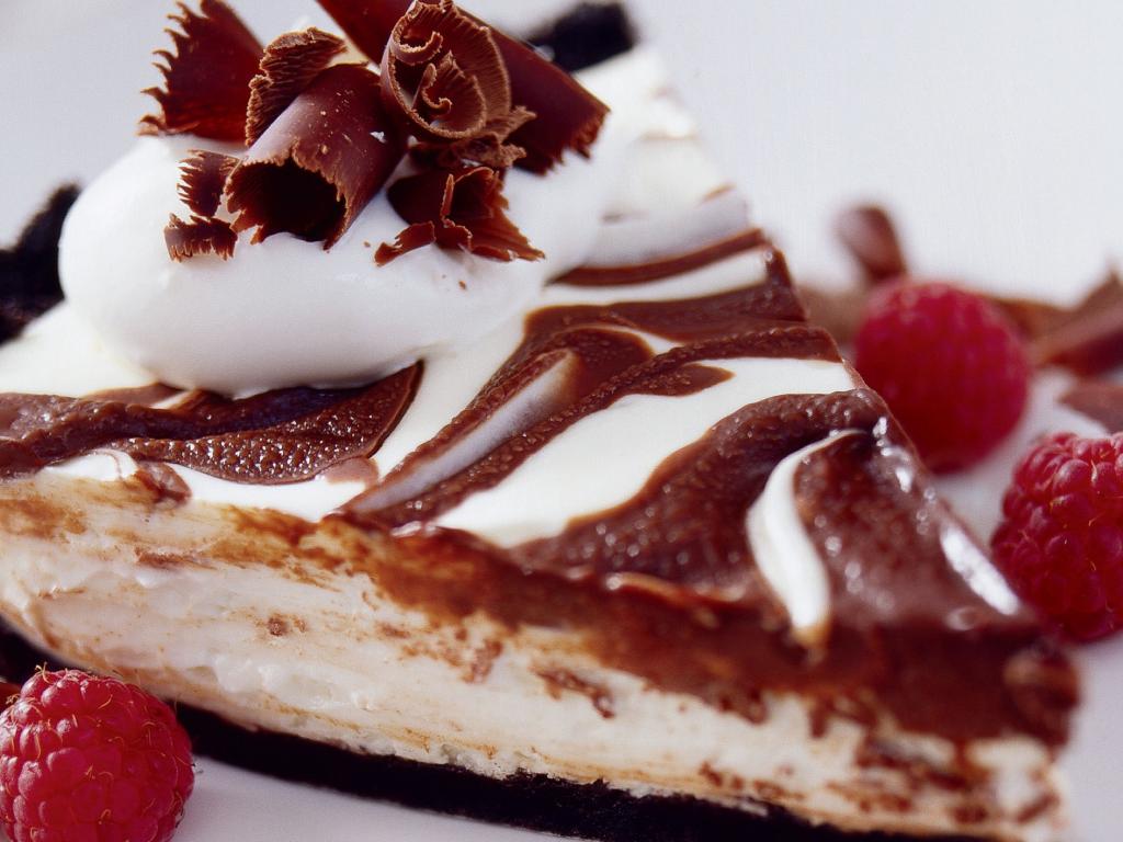 Wallpaper A piece of cake with chocolate and fresh raspberries